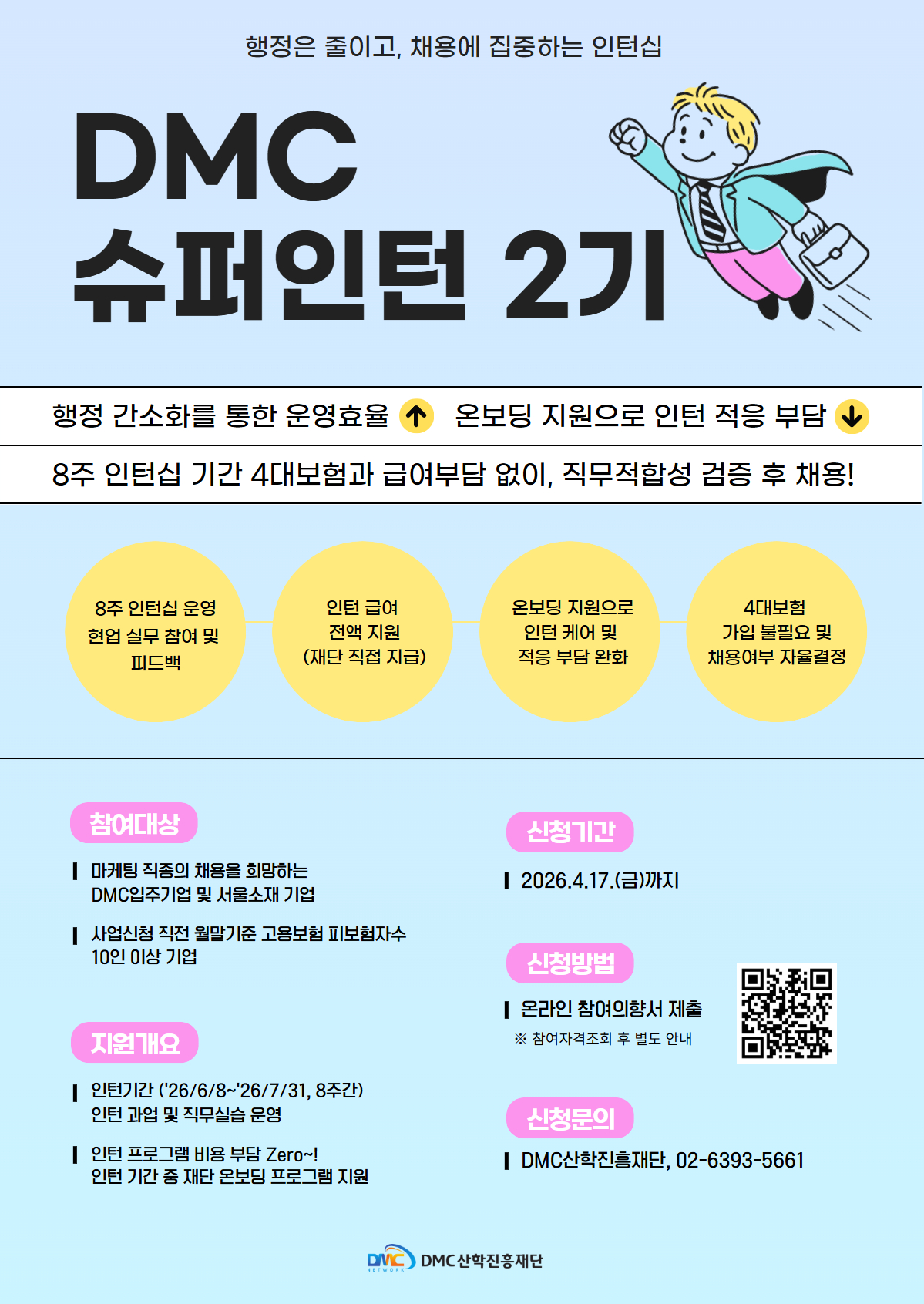 [사업공고] 2026 DMC슈퍼인턴 2기 참여기업 모집안내